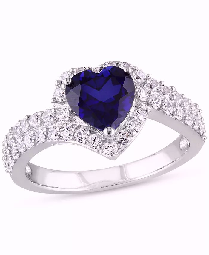 Absolute enchantment. A heart-shaped blue sapphire is caught up in a swirl white sapphires in this sparkling silver ring.