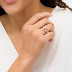Dazzling rows of round diamonds surround a spectacular radiant-cut diamond center to create the main attraction in this stunning bridal. The 14K white gold band of the engagement ring and matching wedding ring gleam with twinkling diamonds, bringing the total diamond weight of the bridal set to 1 1/8 carats.