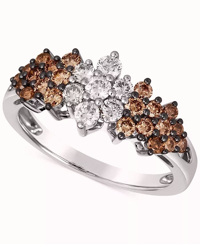 Both sparkling and delicious, this stunning cluster ring is set with decadent Chocolate Ombr
